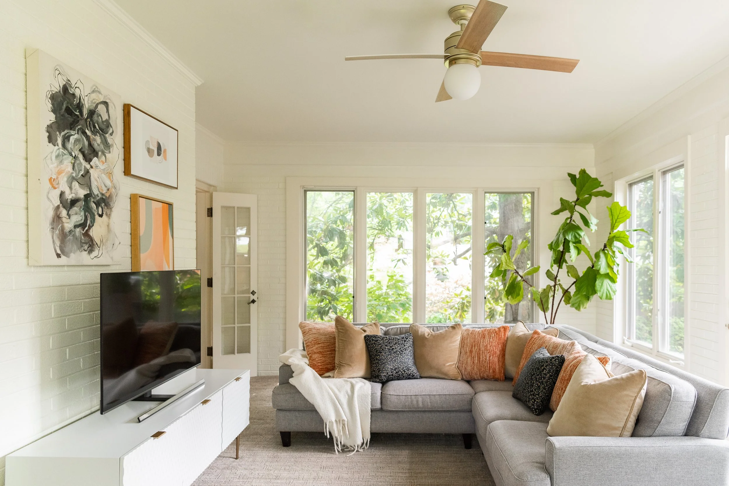 Outside, the sunroom opens up to a small patio that provides a cozy space to eat al fresco as a family or host a small group of friends. Minimal, but high quality furnishings were needed and the result is picture perfect.